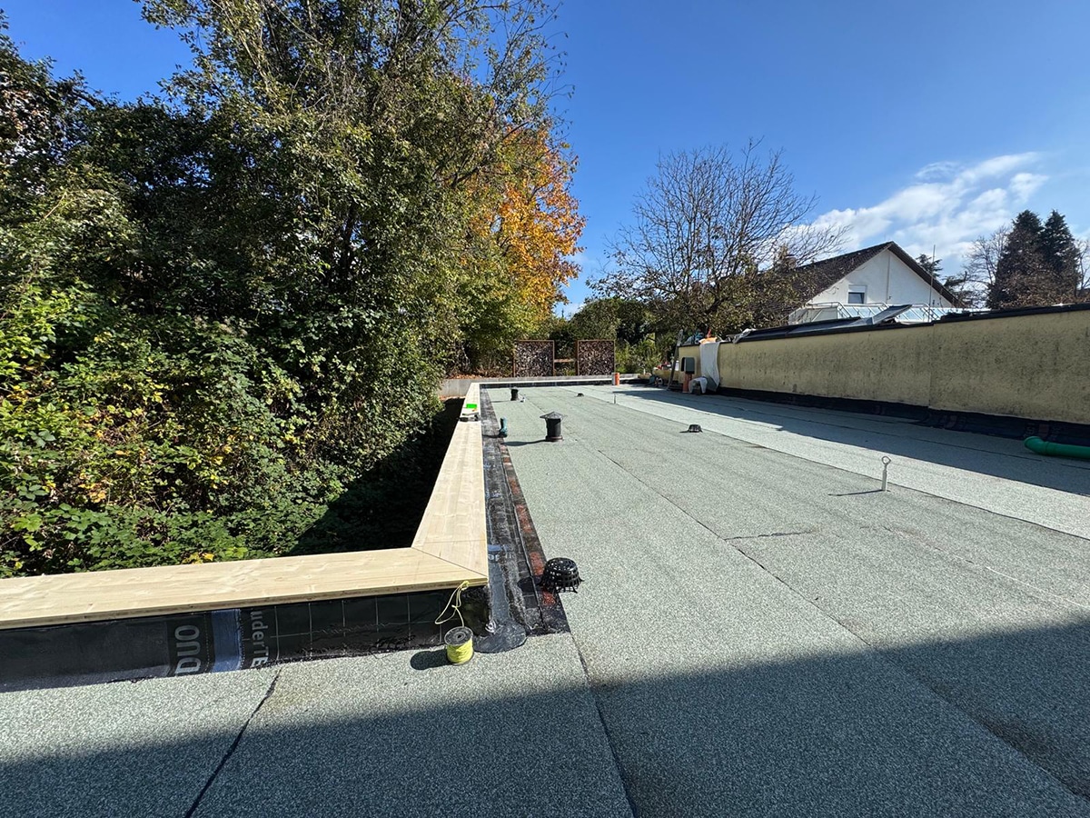 - Installation von Bitumenbahnen (mehrlagig verschweißt) für eine dauerhafte Dichtigkeit