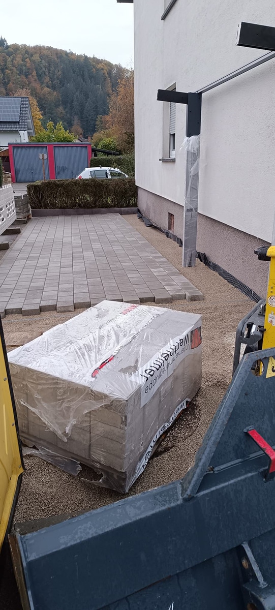 - Verlegen eines hochwertigen Betonpflasters für die neue PKW-Stellfläche